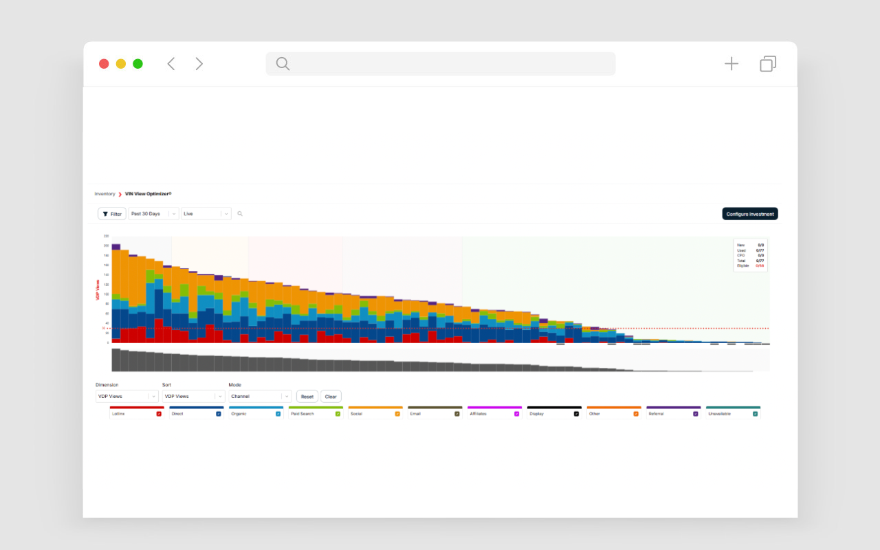 VVO shows real-time VDP views for every VIN across all channels — flagging over- and under-exposed vehicles so you can rebalance spend and boost efficiency.
