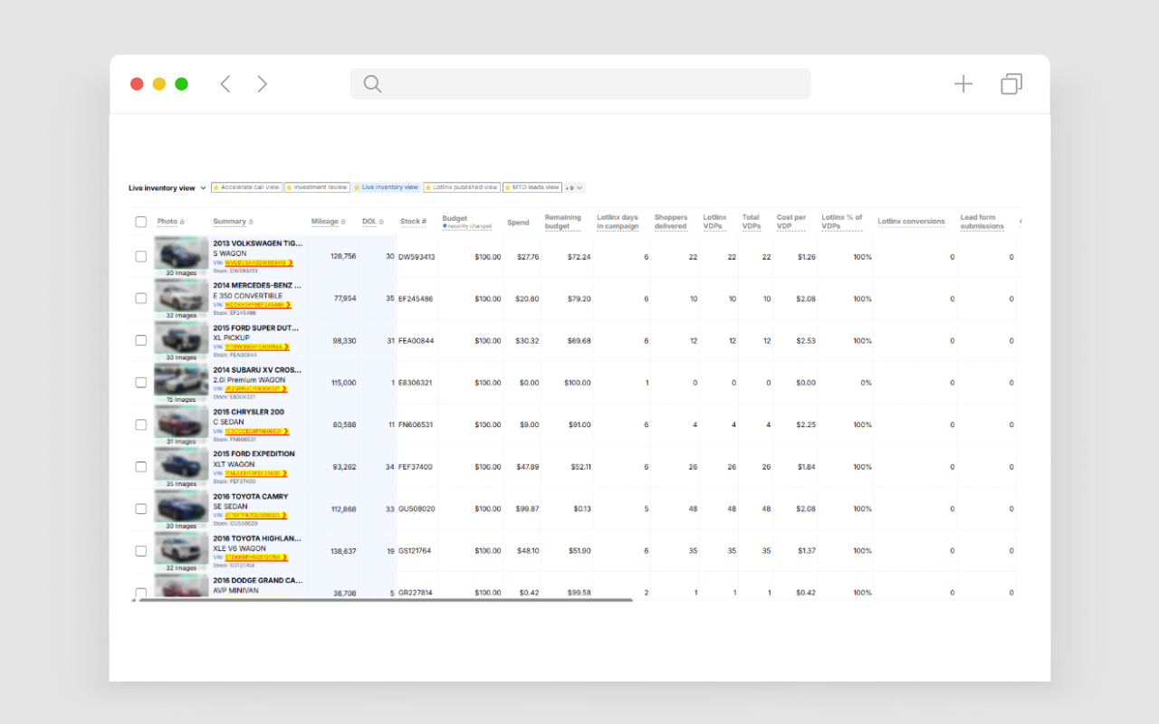 VIN Manager ensures every vehicle gets the online attention it needs. It reveals where your strategy is overextended or underperforming, so you can reallocate budget and drive more efficient results.